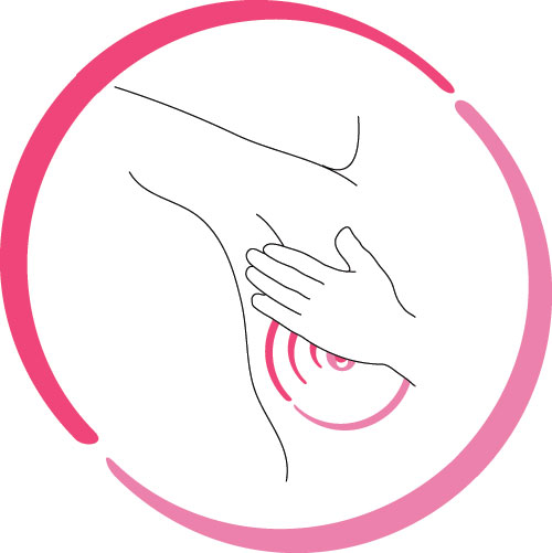 Con tu mano izquierda y usando las yemas de tus dedos índice, medio y anular, presiona suavemente con movimientos circulares, puedes comenzar desde el pezón hacia la periferia dando vuelta a toda la mama. Palpa toda la superficie prestando atención en cambios de textura, presencias de masas o dolor.